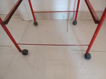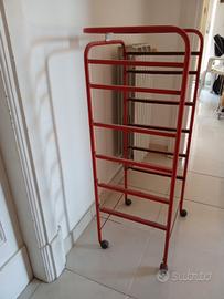 Vendo per inutilizzo una struttura in ferro per un carrello porta oggetti con ruote. Dimensioni 42x33x92 cm, 6 ripiani, spessore interno per mensole o cestelli 1 cm circa. Colore rosso, può essere riverniciato a piacere vostro. In foto è un po' sporco, ma è in ottime condizioni. Solo ritiro, è troppo alto per la spedizione TuttoSubito