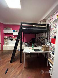 Struttura in legno per letto a soppalco, modello STORA IKEA, dimensioni 140x200 cm, altezza 214 cm, altezza da pavimento a base letto 171 cm compreso di materasso . Colore nero, con scala che può essere montata a destra o a sinistra; buone condizioni, vendo per cambio camera.