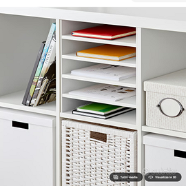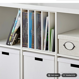 Struttura da inserire all'interno dei cubi Kallax, colore bianco con 4 ripiani. Completa di tutti i supporti per ripiani. Pari al nuovo.