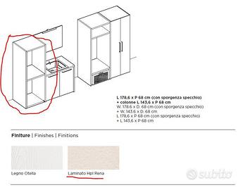 Caratteristiche: struttura interna metallica - mensola intermedia fino a filo muro posteriormente - da fissare alla parete del bagno per maggiore stabilità. Struttura per lavatrice e asciugatrice con ottime finiture.