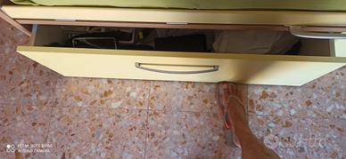 letto a castello basso con cassettoni ottimo stato smontaggio e trasporto a carico dell'acquirente volendo ci sono i materassi singoli, colore legno naturale e giallo. Zona Ostia Lido