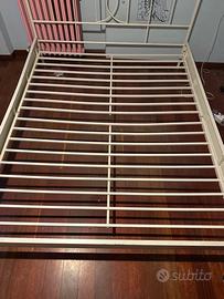 Vendo struttura letto matrimoniale in ferro verniciato bianco, stile elegante con testiera decorata.