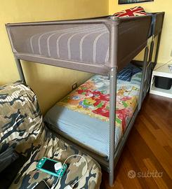 Struttura letto a castello grigio scuro 90x200 cm, Tuffing Ikea. Soluzione ideale per le camerette di piccole dimensioni. Questo letto ha superato tutti i test di sicurezza. È un po’ più basso, alto 130 cm, per facilitare la salita dei bambini e per rifare più comodamente il letto superiore. Richiede montaggio a due persone e supporta max 100 kg per piano. Qualche segno dell’utilizzo ma ottimamente tenuto. Una piccola vite spezzata (vedi foto) che non ne compromette montaggio, utilizzo e sicurezza. Si fornisce già smontato, disponibile per il carico presso un vano al piano terra da cui è possibile avere accesso diretto con la macchina. Non è possibile la spedizione.