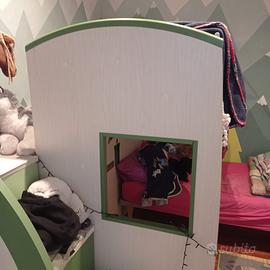Vendo struttura letto a castello completa di reti e cassetti contenitori, inteso sia come “gradini” di salita al letto superiore sia come cassettoni posteriori alla struttura stessa.