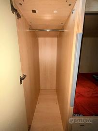 - Anta armadio integrata, profonda e capiente, con zona appendiabiti e spazio retrostante per scatole