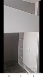 Vendo Struttura letto singolo a soppalco cameretta ikea modello SMASTAD, con armadietto e cassetto. Non è inclusa la scrivania presente nella foto originale, la scaletta ha una crepa.