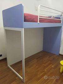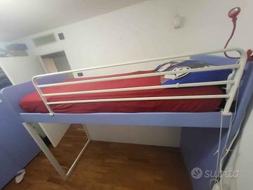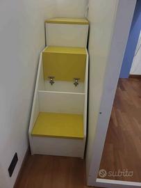 Struttura della ZG Mobili con letto singolo a soppalco in ottime condizioni (rete con doghe), dotata di una scaletta a gradoni attrezzati di contenitori apribili e della protezione anticaduta (cm 206*135*173 h) . Nel prezzo è compreso il materasso.
