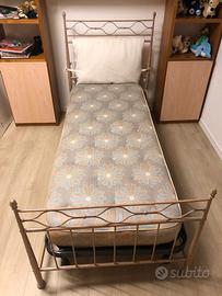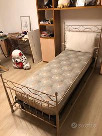 Buonasera come da foto vendo struttura letto comprensiva di rete e materasso. DIMENSIONI Larghezza 90 cm Lunghezza 216,5 cm Altezza posteriore 117,5 cm Altezza anteriore 78 cm Ritiro a carico dell’acquirente
