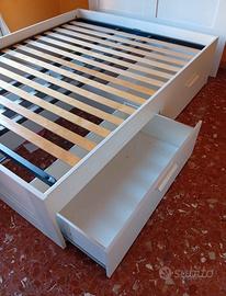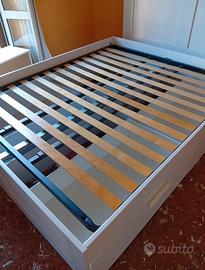 Struttura letto con cassetti e rete a doghe compresa. Matrimoniale 160x200cm, tutte le misure in foto. Ritiro e smontaggio a carico dell’acquirente. Ciampino, primo piano.