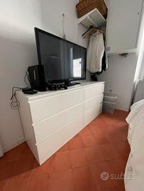 La struttura è in buone condizioni, solida e funzionale. I cassetti scorrono bene e offrono molto spazio per vestiti e oggetti. Design moderno e minimale, colore bianco, facile da abbinare a qualsiasi arredamento.
