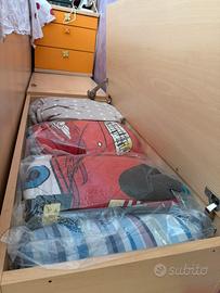 Causa trasloco vendo struttura letto in condizioni eccezionali composta da letto rialzato, senza materasso e cuscino, con passerella contenitore a due sportelli , ottimo per i cambi stagione, scaletta con cassetto contenitore