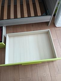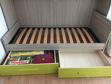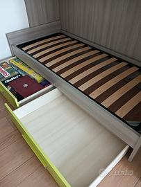 Acquistato in noto mobilificio ad Aosta, struttura letto (rete a doghe rinforzata) con cassettoni, completo di materasso. Usato in ottimo stato. Agevolmente smontabile con poco sforzo, lasciando la struttura intera (si toglie rete a doghe e cassettoni). Ingombro totale struttura 90x200 - materasso 80x190. Smontaggio e trasporto a carico acquirente.