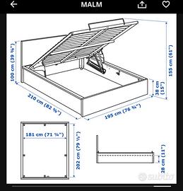 Struttura letto bianca con contenitore, dimensione king size (180x200).