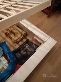 Struttura letto in bamboo con doghe in legno e vano contenitore sottostante (nb le doghe si alzano manualmente, non meccanicamente).