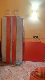 Struttura di legno per letto singolo, con rete in doghe di legno orizzontali. Completo di materasso singolo del tutto nuovo (usato poche volte).