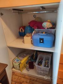 Vendo struttura letto sospeso. La parte sotto e composta da 3 ante con dei ripiani all'interno, e 4 cassetti.