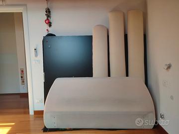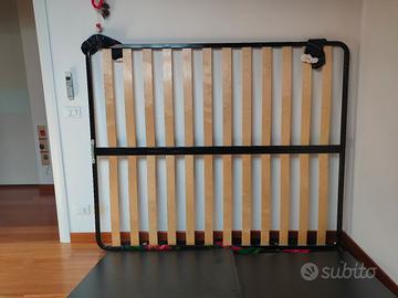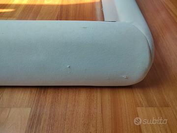 Disponibile, smontata, a Casanova di Martignacco. Regalo struttura per letto matrimoniale con rete a doghe 190x160. Struttura estremamente solida e robusta, di ottima fabbricazione. Ha un vano contenitore e il sistema di sollevamento del materasso. È imbottita e morbida sia nel giro letto che nella testata. Deve essere foderata perché si è sbriciolata la ecopelle originale. Lievemente danneggiata l'imbottitura dai miei gatti, ma una volta ri-foderata torna nuova. Imperfezioni visibili nelle foto.