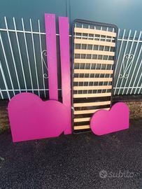 Struttura letto a cuore compresa di rete ortopedica singola in buone condizioni.