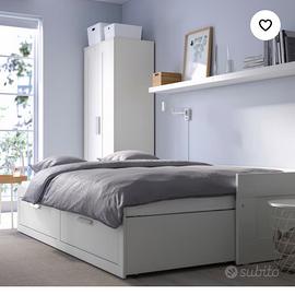Struttura letto divano apribile e trasformabile in letto matrimoniale con 2 cassetti contenitore. Colore bianco, dimensioni 80x200 cm + materassi