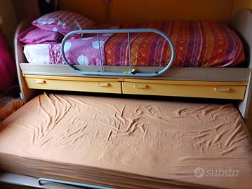 Letto doppio con scrivanie estraibili e 6 cassettoni. La struttura è già smontata, ritiro a carico dell’acquirente.