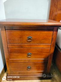 Struttura matrimoniale con cassetti in noce americano e due comodini . Senza rete Comodino h65 L 55 P37 Letto 213x 183 Testata 103