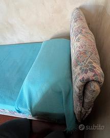 Struttura letto marca Flou comprensiva di testata letto e bordo rivestiti con tessuto in 100% cotone con motivi floreali. Materasso sempre marca FLOU in ottime condizioni, come nuovo