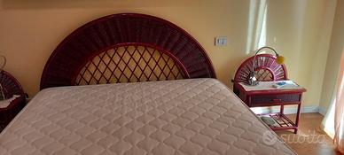 vendo struttura letto leggero in giunco/ rattan bordeaux facile da smontare con materasso a molle praticamente nuovo 160x190 completo con doghe