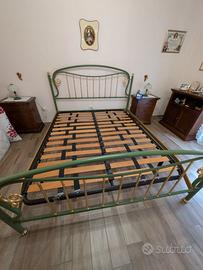 LETTO IN FERRO CON INSERTI IN OTTONE Letto matrimoniale GFG Fossati ferro e OTTONE con rete a doghe – come nuovo Ritiro in loco.