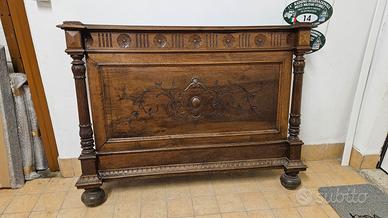 Struttura letto fine 1800 per rete 120x190 composta da testiera, pediera e longheroni montaggio ad incastro. Dimensioni testiera: 139x172 Dimensioni pediera: 136x101 Lunghezza longheroni: 195 Buone condizioni della struttura.