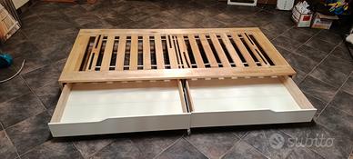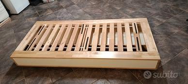 Struttura in legno "Mandal" Ikea con doghe in legno inserite nella struttura. 2 cassetto estraibili alla base. Struttura super solida ed esteticamente molto bella. misure 202x90x27