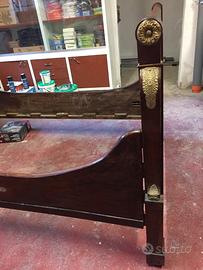 Vendo bellissimo letto Impero in noce, con fregi in metallo su di un lato, Lunghezza cm. 200, Larghezza cm 130, Altezza cm 115 (circa)