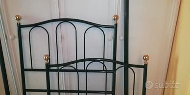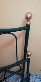 Struttura ideale per letto singolo, in ferro battuto, verde bottiglia scuro e pomelli oro. Arredo vintage, Made in Italy di qualità. Formato da 4 pezzi separati e kit di montaggio.