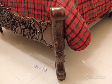 Struttura letto stile barocco, tenuta benissimo, con tutte le sue parti. la rete NON è compresa nella vendita. È possibile vederla da vicino,zona Capoterra il ritiro è a carico di chi acquista.
