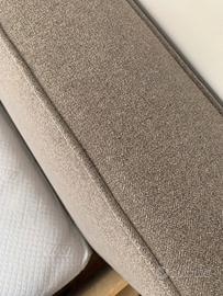 Testata e sommier rivestiti in tweed grigio antracite/beige, tessuto resistente e di qualità, trattato con Vaporetto per igienizzarlo.