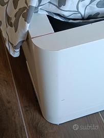 Causa passaggio ad altro modello vendo struttura letto matrimoniale in legno massello laccato bianco opaco completo di contenitore e rete con doghe in legno