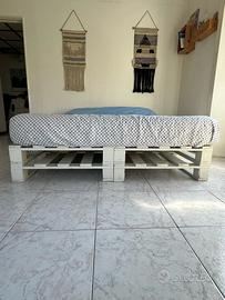 Struttura letto con pallet verniciati e fissati, fatta da falegname materasso memory aloe Vera spessore circa 30cm