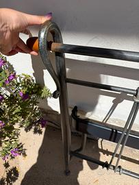 Struttura letto matrimoniale in ferro battutto in ottime condizioni con pediera e testiera. La pediera ha solamente un lato dissaldato. Vendo anche la base del letto con toghe per un supplemento di €50.