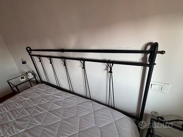 Vendo letto in ferro battuto e comodini con ripiani in vetro. Idealissimo per casa vacanze. Non presenta difetti Dimensioni: Letto 200 cm lunghezza 175 cm larghezza Altezza spalliera 120 cm Comodino 43 cm larghezza 34 cm profondità 61 cm altezza Non è in vendita la rete e il materasso Prezzo trattabile