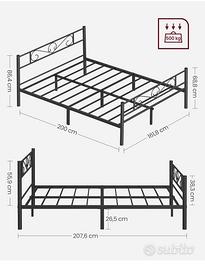 Struttura Letto Matrimoniale in Ferro Battuto a Doghe 160 x 200 cm Testiera Elegante in Metallo Stile Rustico Moderno Nero