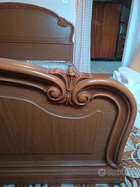 Vendo elegante struttura letto matrimoniale in legno, robusta e stabile, completa di 2 reti metalliche singole.