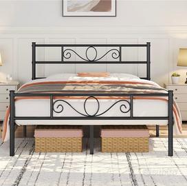 Vendo bellissima struttura letto matrimoniale in metallo verniciato nero, dal design moderno con dettagli decorativi eleganti.