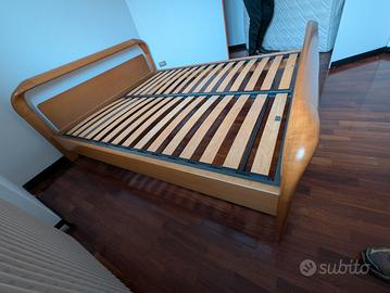 Struttura letto matrimoniale legno massello, per materasso 160x200, rete in metallo con doghe in legno. Solo ritiro, no spedizione