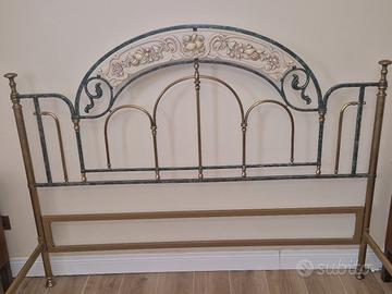 vendo struttura letto ferro battuto e ottone con intarsio in legno nella testiera del letto. La struttura si presenta in ferro pieno.