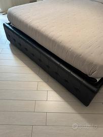 Struttura letto aperta dentro (non contenitore) per poter mettere tranquillamente la propria rete. La struttura è in ottime condizioni, nulla in particolare di sé da segnalare. Non è consumata, non è rotta una macchie o altro. Ancora perfetta per l’uso. In pelle. Molto robusta e di ottima qualità, ma nn te pesa. La vendo esclusivamente per cambio tipologia arredamento e acquisto del nuovo!