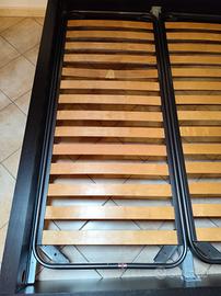 struttura per letto matrimoniale con doghe. Ingombro esterno 1,77x2,11 Spazio interno 1,61x2,01 H struttura letto 0,30cm H testiera 0,77cm una diga rotta