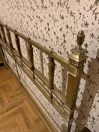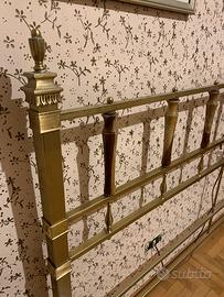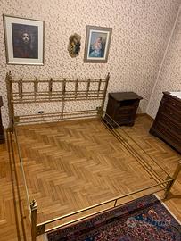 Meravigliosa struttura di letto matrimoniale in ottone . Testata con lavorazione ad inserti in alabastro. Vintage anni’60/70. Misura 200x180x110cm. Usata e vissuta ma in piu che buone condizioni estetiche. Articolo splendido per amanti di arredamento vintage.