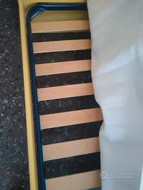 Struttura letto singola colorata in legno con rete a doghe e materasso singolo in memory sfoderabile (antiacaro, antiallergico, nessuna macchia, acquistato 1 anno fa). Tutto in ottime condizioni