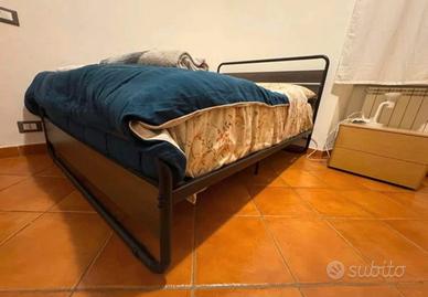 Struttura letto in metallo con testiera e pedier 31 cm di altezza. Stile moderno. Acquistato ad agosto, come nuovo. Dimensioni: 197Lx141Lx104H cm Materiali: metallo e legno. RITIRO GIÀ SMONTATO A ROMA.