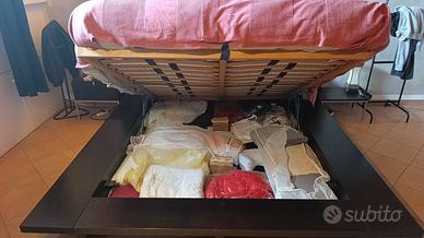 vendo letto contenitore completo di tmrere a doghe in legno color Wenghe' tipo foot-on con materasso in Memory della Dorelan ..NO COMODINI...misure ingombro testiera 250x97 h. .mentre per la struttura letto,220x220 cm...