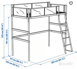 Vendo struttura letto a soppalco IKEA VITVAL in ferro grigio. Misure materasso 90x200. Misure totali come da foto.
